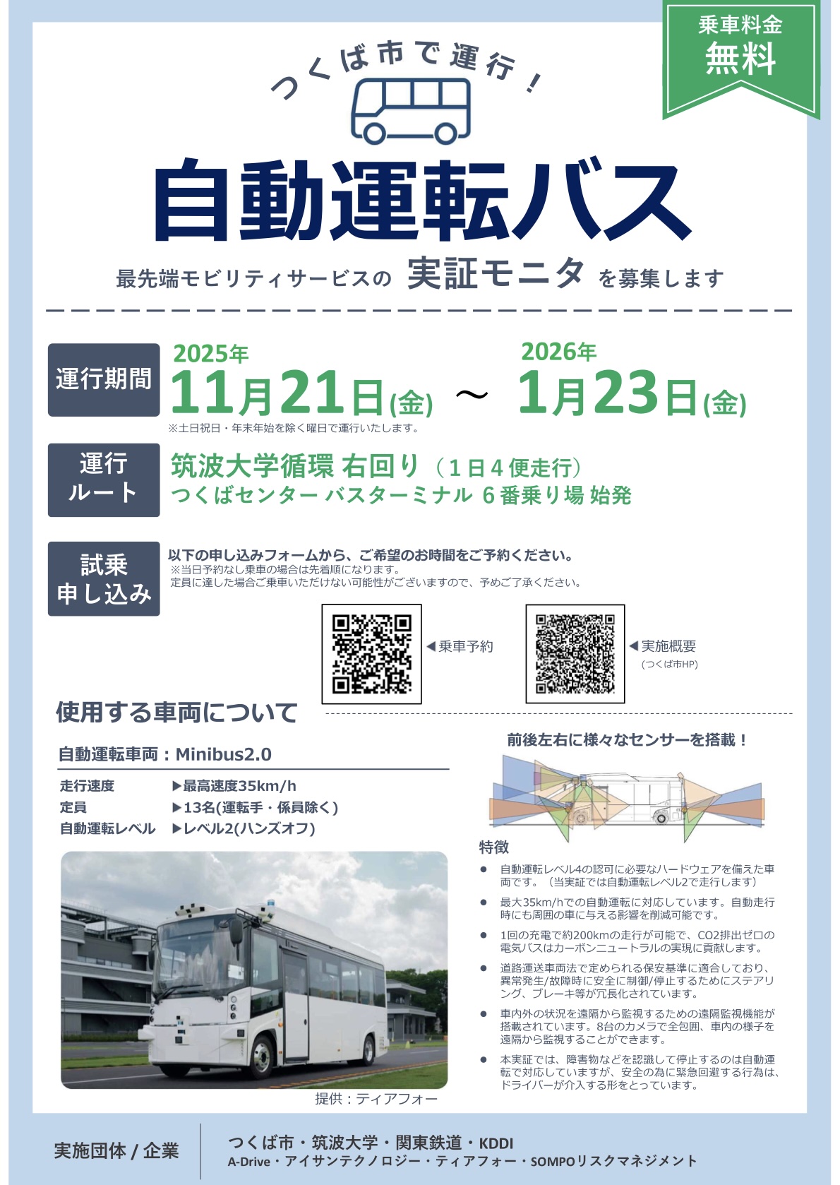 筑波大学循環においてレベル 4 自動運転バスの実現に向けた実証走行を実施します